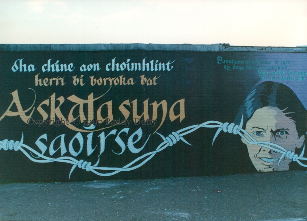 The mural in the distance to the left is the 1994 Fleadh mural.