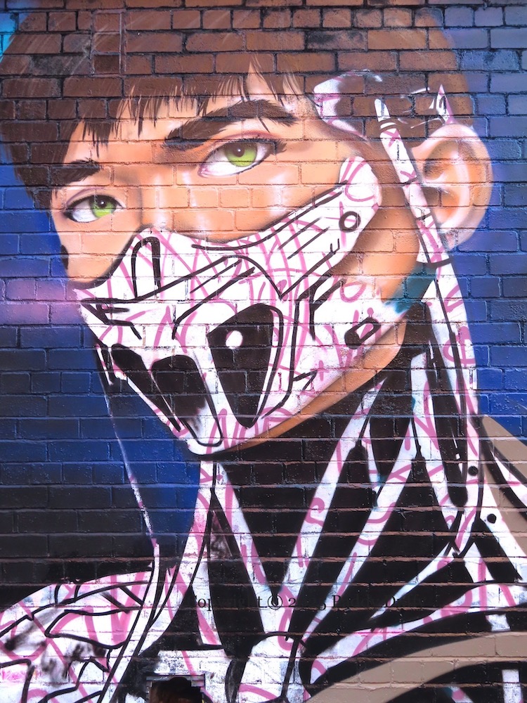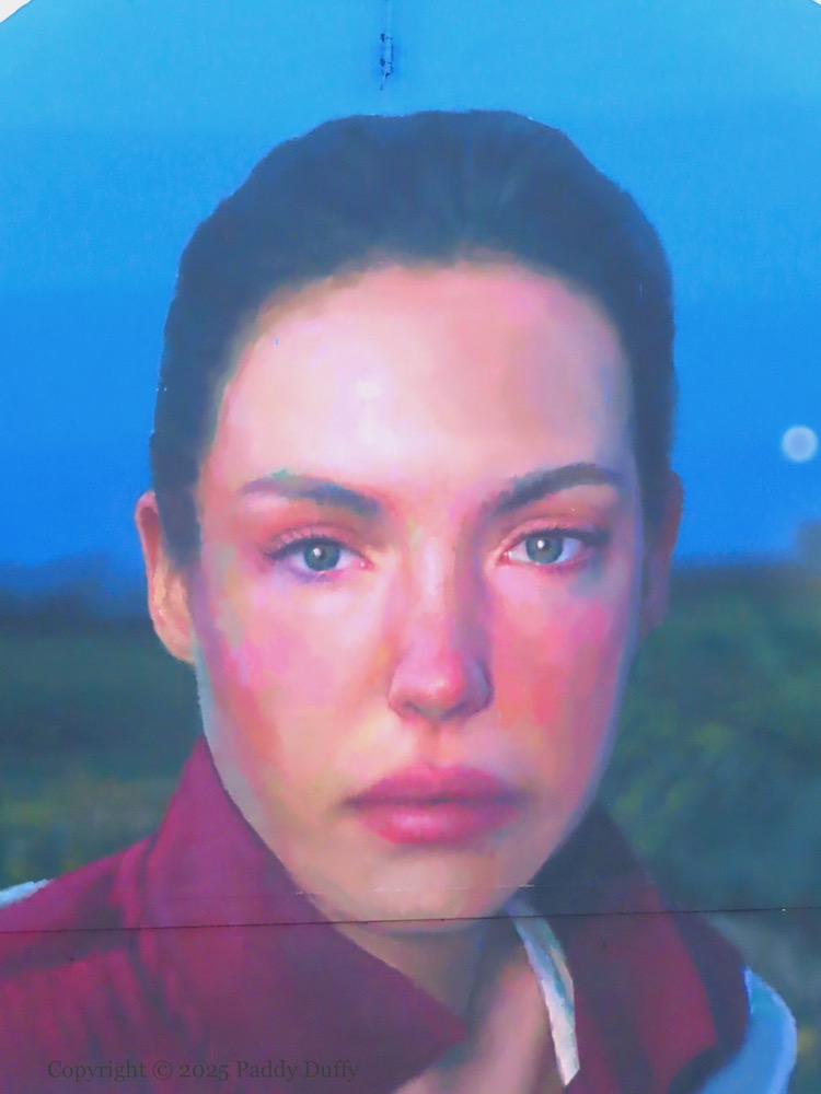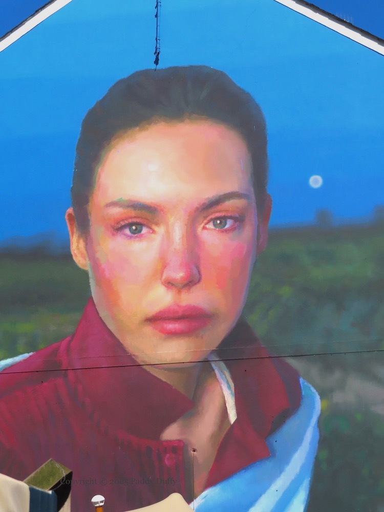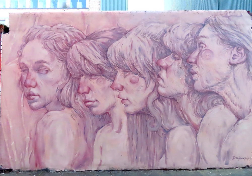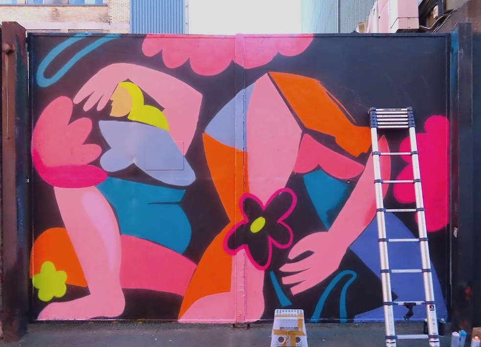 This street art is by Spanish artist Slim Safont (web) on a side wall of the Spaniard in Skipper Street, Belfast city centre, for Hit The North 2025 (Seedhead Arts).