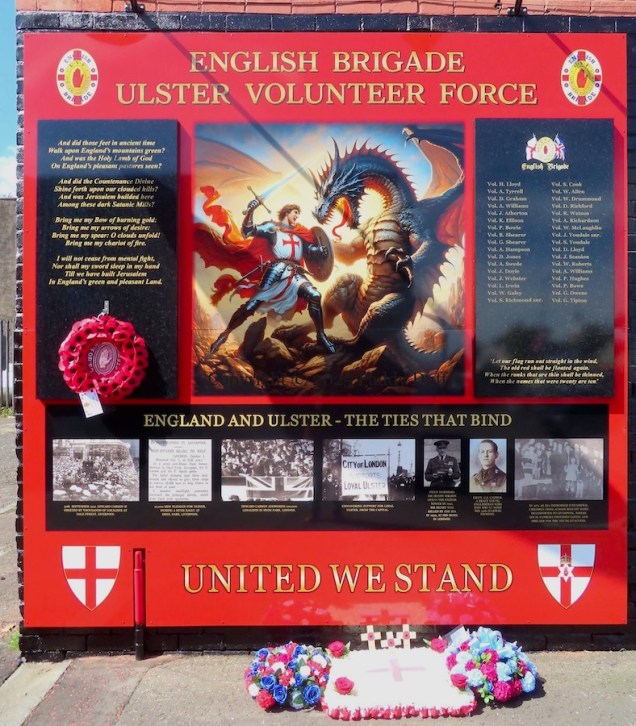 “English Brigade Ulster Volunteer Force.” “England and Ulster – the ties that bind.” “United we stand.”
