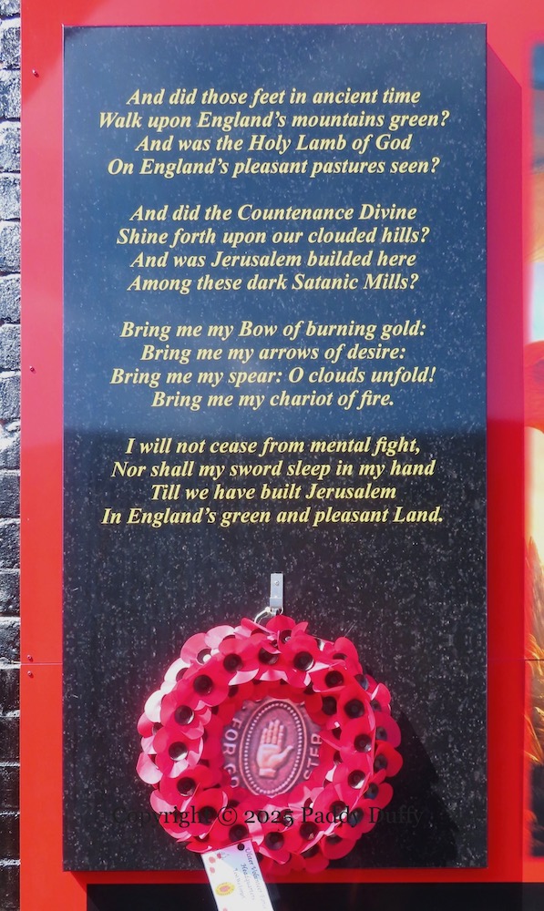 On the left are the words from William Blake’s poem, which also serve as the lyrics to the hymn Jerusalem.
