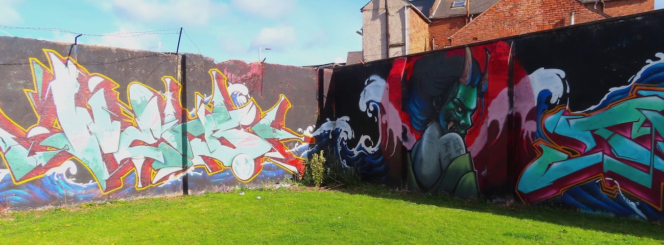 For Easter 2025, an “Óglaıgh Na hÉıreann roll of honour 1981” board was added to the wall at the top of Bingnian Drive in Andersonstown, with the names of the ten who died in the second hunger strike. “Óglaıgh Na hÉıreann” here obscures the difference between the IRA and the INLA (O’Hara, Lynch, Devine), and between the Provisional IRA and the anti-Agreement IRA factions. It’s not clear to what extent the (2009 onward) ONH is currently operating, after a split in 2024 (BelTel 2024 | BelTel 2025).