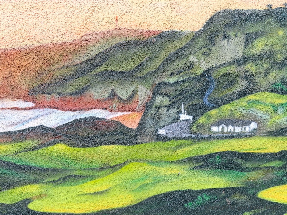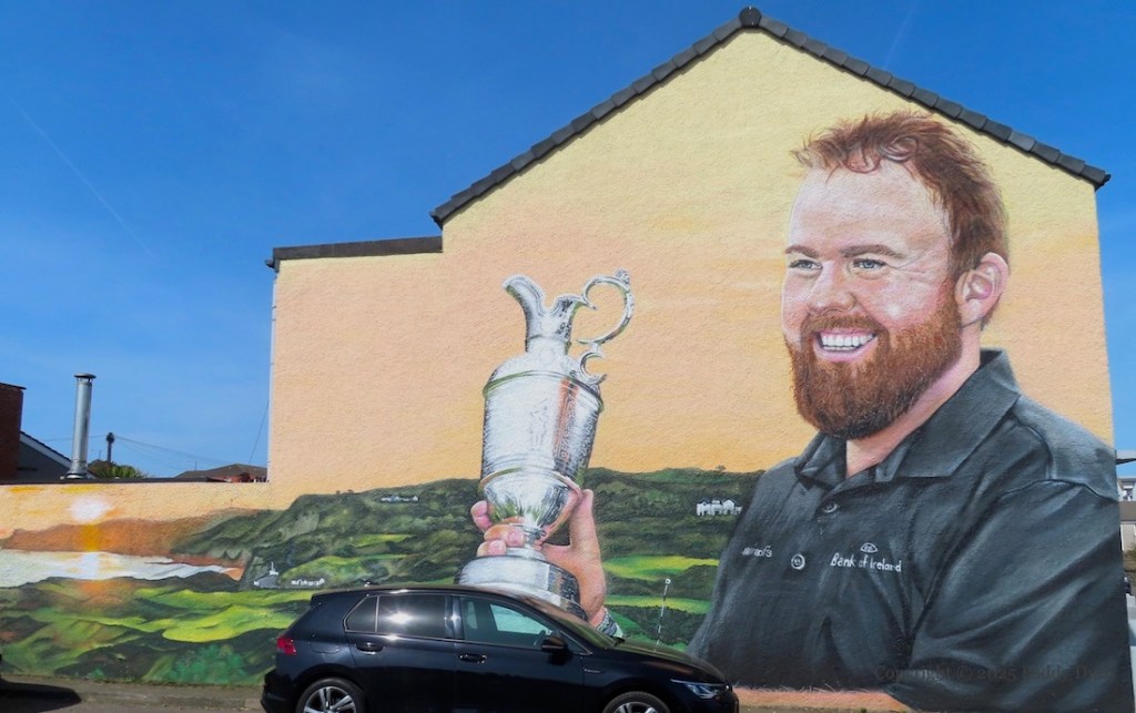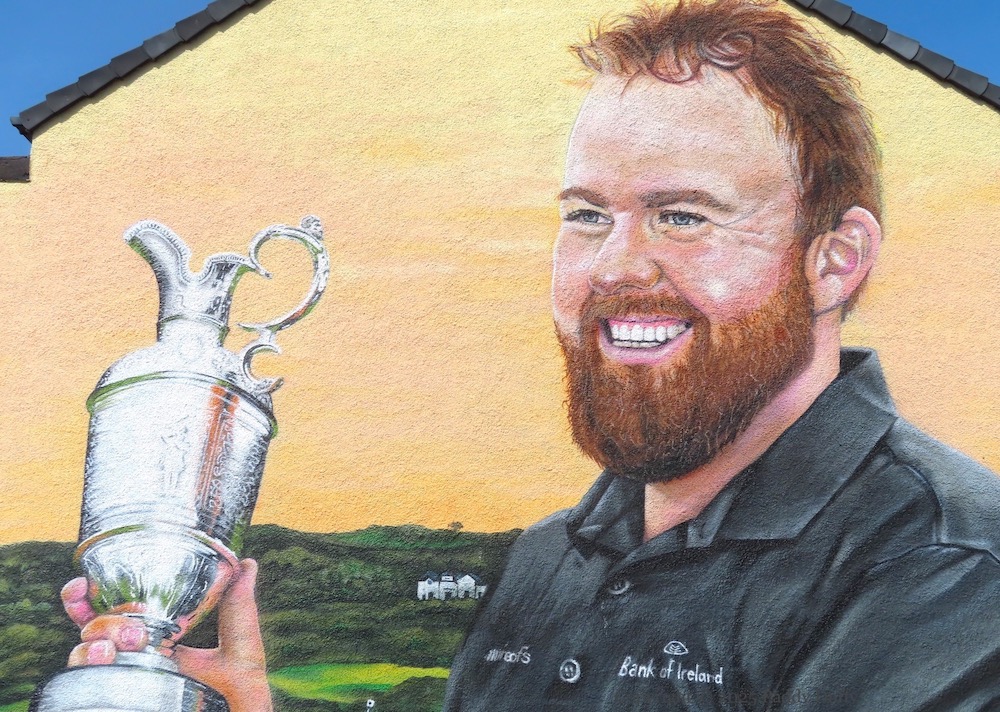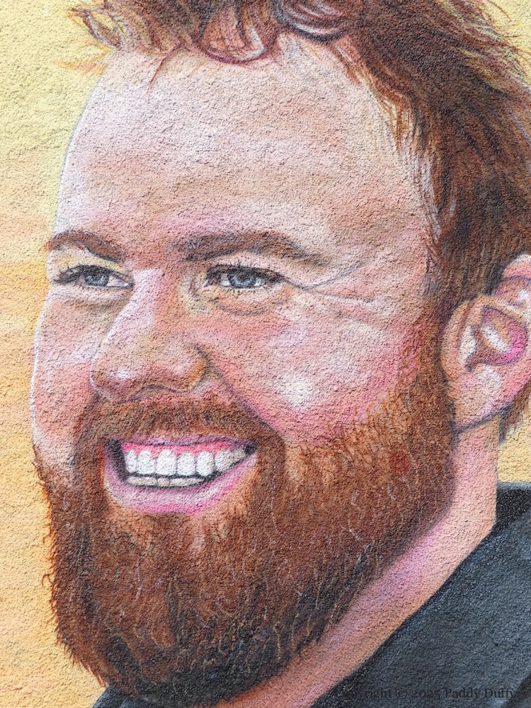 2019 was the last time the Open was played at Royal Portrush. This mural was painted by Peaball (web) on Causeway Street, near the club, last July (2024), a year before the Open will return to the course (July 17th-20th).