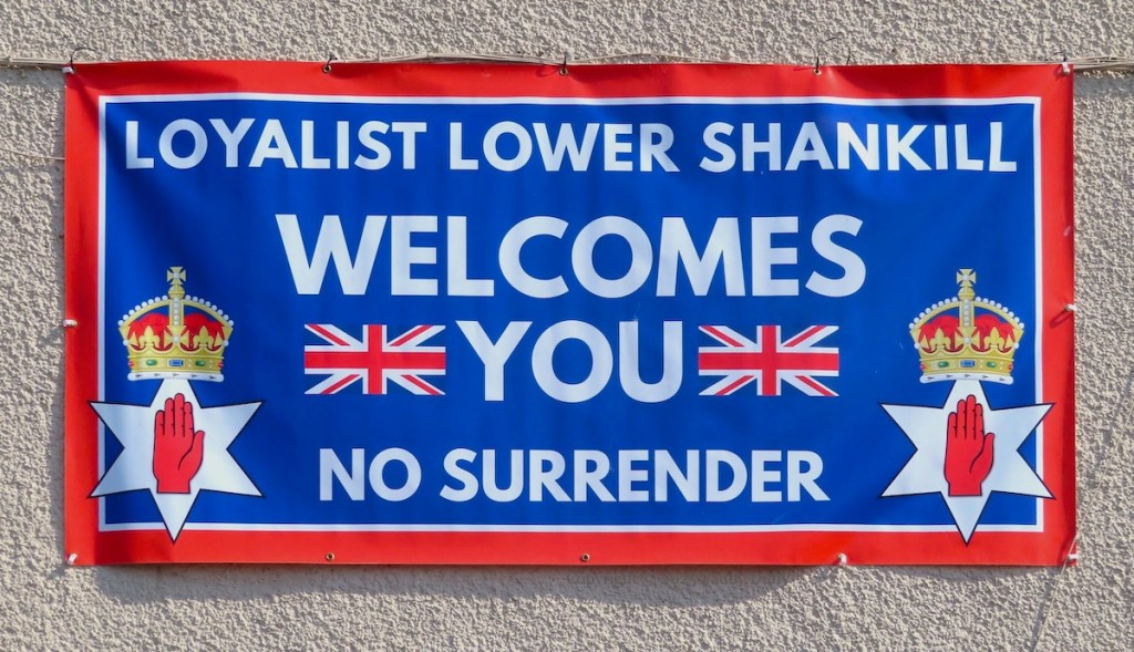 The “Loyalist Lower Shankill” (a UDA stronghold) welcomes you – if you are aligned with the United Kingdom, the crown, and Northern Ireland; to all others who might have wandered in, “no surrender”.
