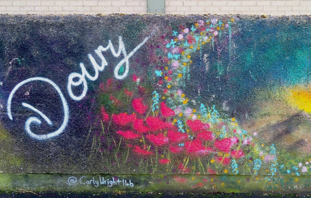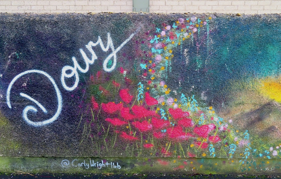 The work is by Carly Wright (web) and Sam McAleese – who also did Beacon Of Hope in the town’s Ballykeel estate, and a piece in Belfast for HTN 2023 – in September 2023, with support from the Doury Road Development Group (Fb) and the Housing Executive.