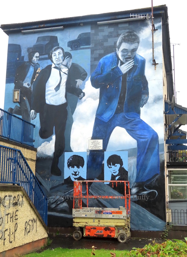 Commemorations of the INLA’s fiftieth anniversary have so far been limited to graffiti – see Saoırse Go Deo in Derry and Let The Fight Go On in Belfast – but here we have two deliberately painted panels in the Bogside (specifically Meenan Square) (one replacing The Way We Were).