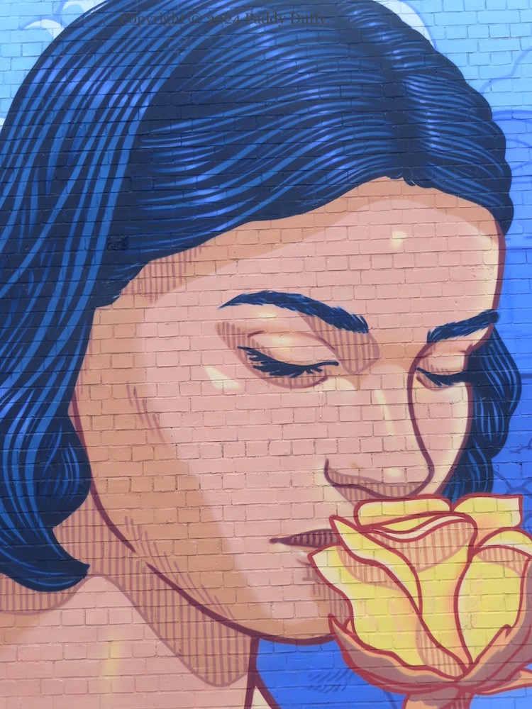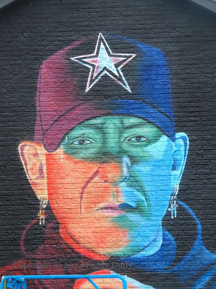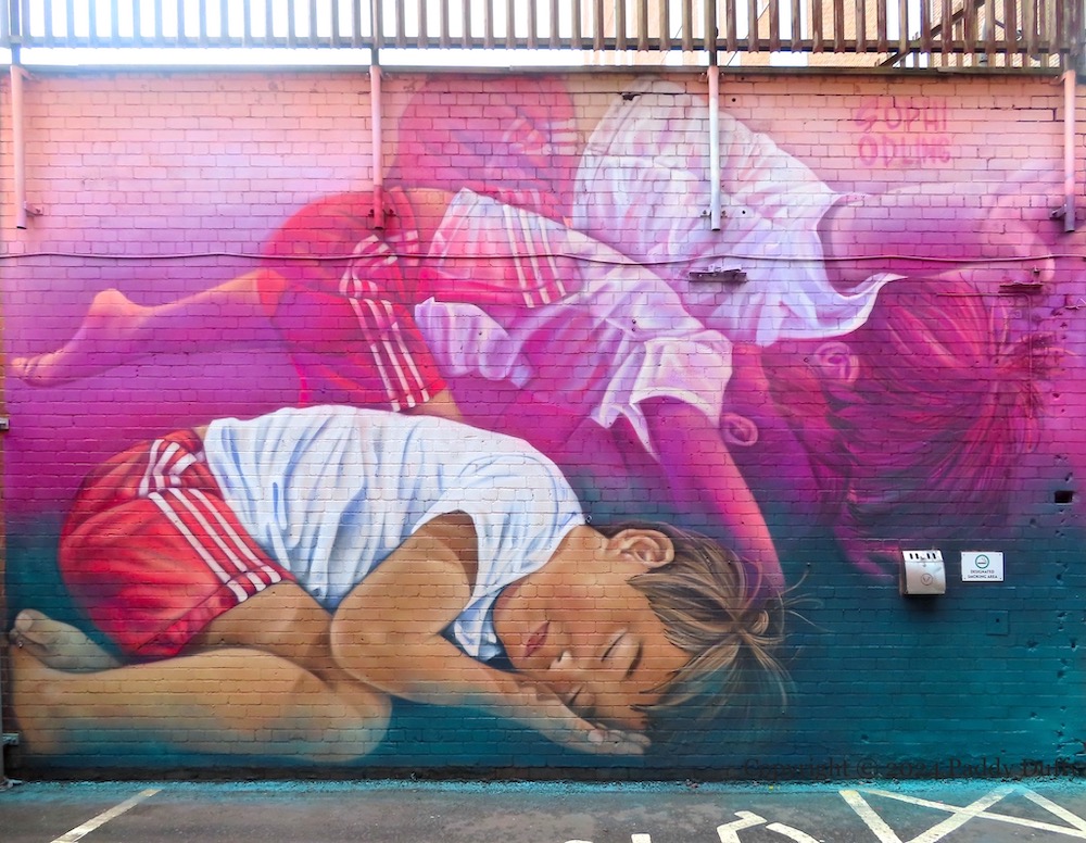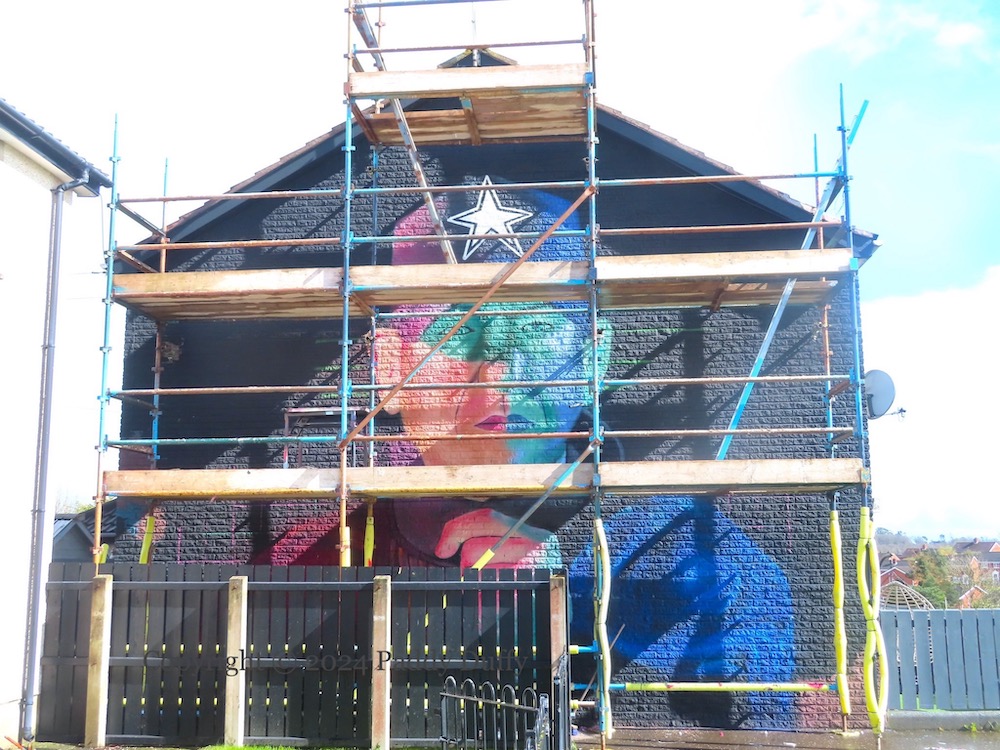 The in-progress shot (final image) is from March 29th. Painted by (artist and former DJ) Glen Molloy (ig) and launched on May 10th. The original photograph can be seen at Twisted Records.