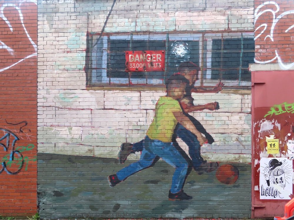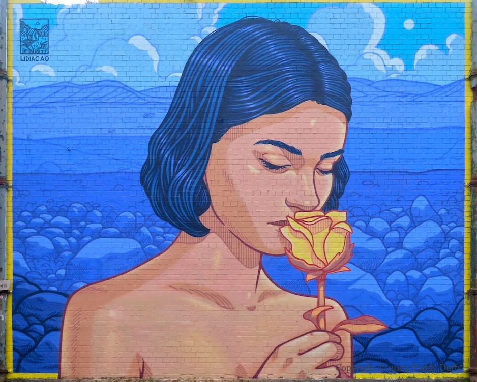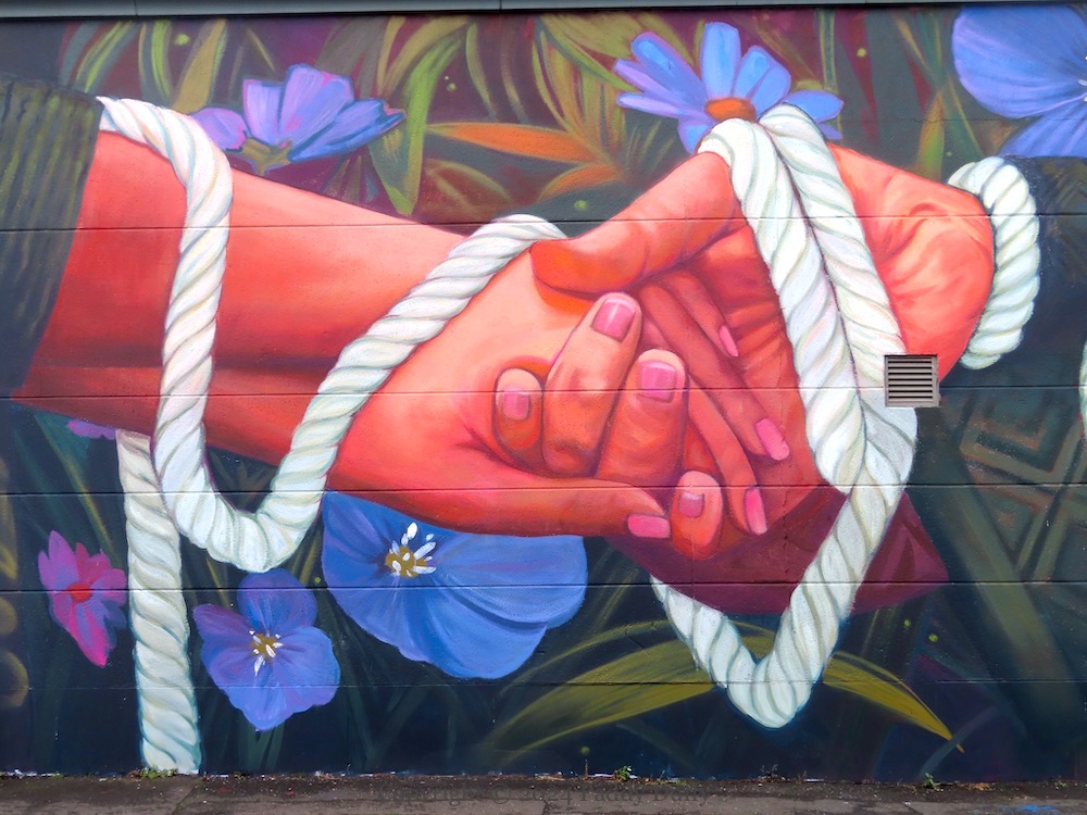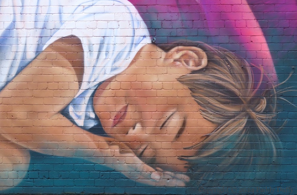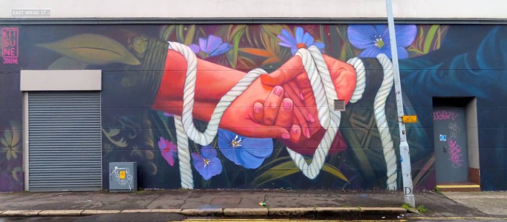 The in-progress shot (final image) is from March 29th. Painted by (artist and former DJ) Glen Molloy (ig) and launched on May 10th. The original photograph can be seen at Twisted Records.