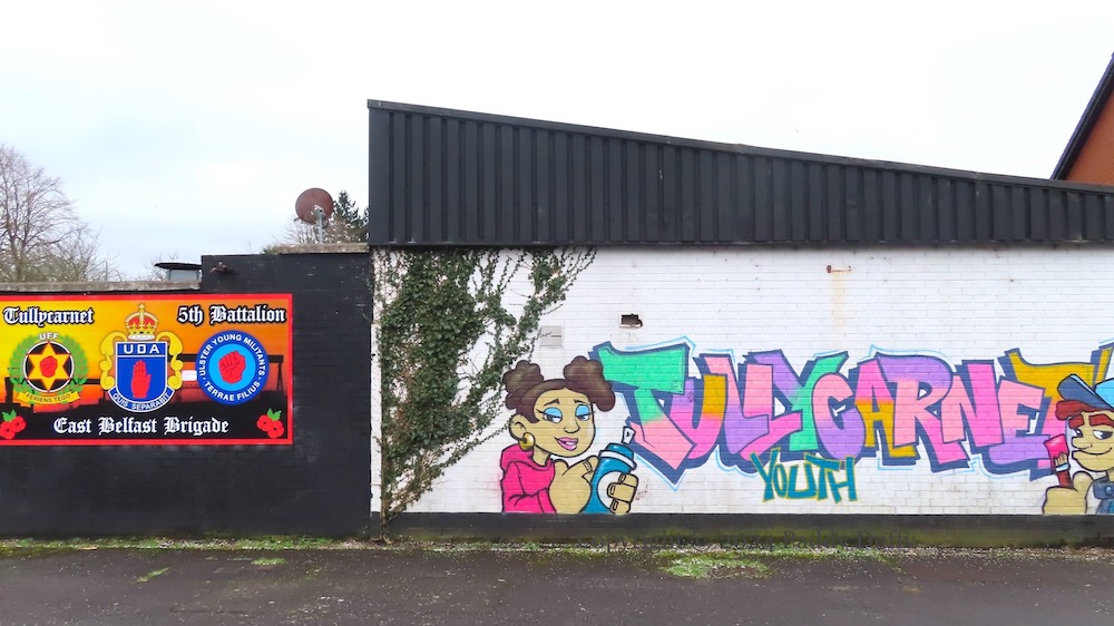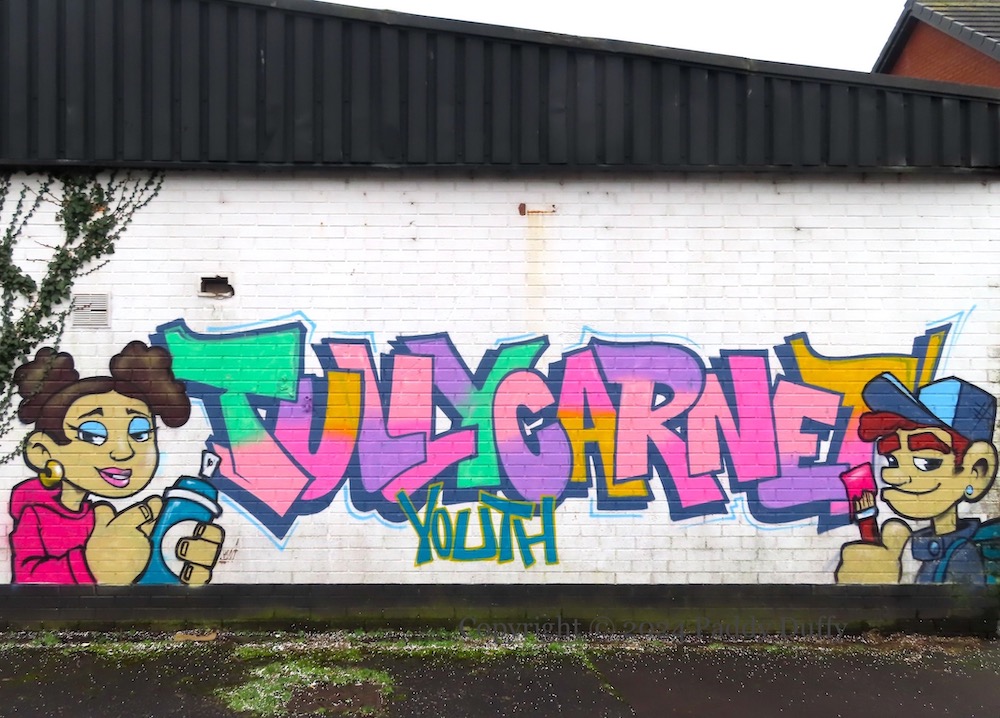 Here is a gallery of images from the Blaze FX art in the (western) Tullycarnet subway, which promotes various community organisations, including TagIt (Fb), Tullycarnet flute band (Fb), Tullycarnet Community Football Club, Tullycarnet Family Project, Helping Hands Autism Support Group.