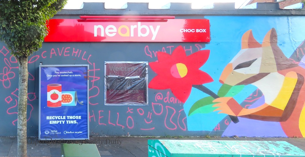 Danni Simpson (ig) and Mr Fenz (ig) have completed their second mural in as many weeks on the Cavehill Road, adding a fox to the side of what is now Ben Madigan’s (formerly the Cavehill Inn) on Charnwood Avenue.