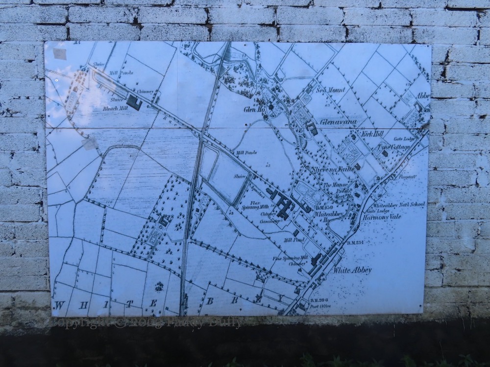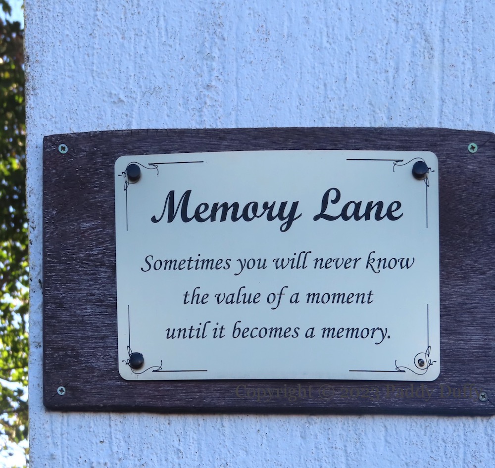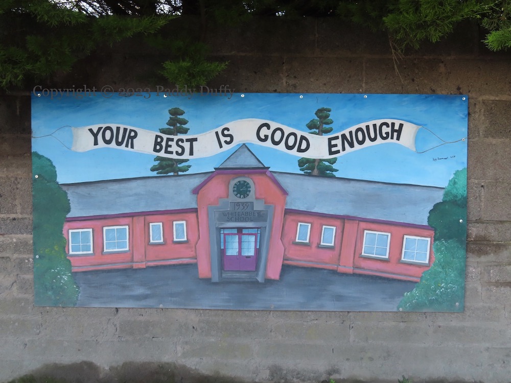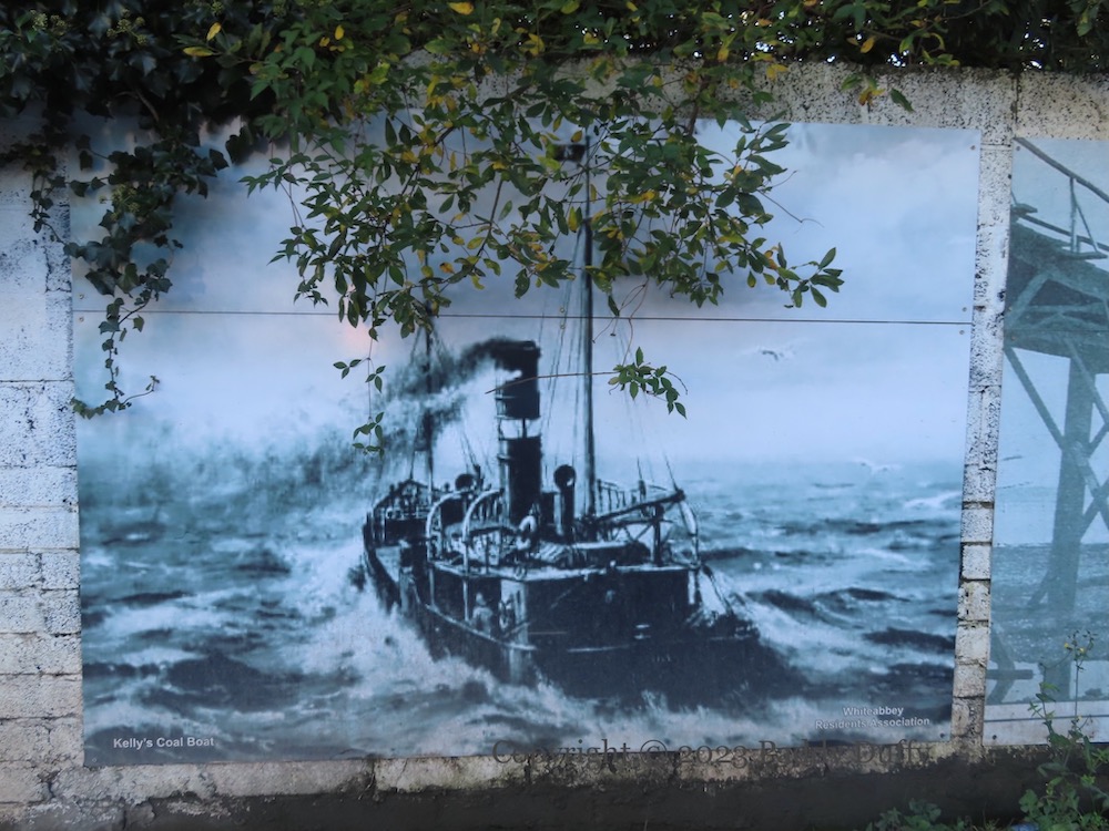 “Sometimes you will never know the value of a moment until it becomes a memory.” Work to clean up and beautify Devlin’s Lane in Whiteabbey began in 2020, with the large butterfly mural shown above (Belfast Live); 15 (16?) boards showing local history were put in place in August 2021 (NIWorld | Belfast Live). The text on the ‘White Abbey’ panel comes directly from WP.