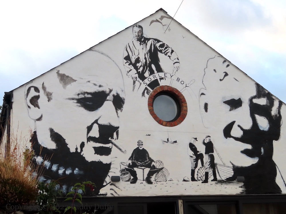 Ballycastle harbour is home to the Rathlin Island ferry and a memorial plaque to Marconi for an 1898 transmission between the town and Rathlin, and Morton’s Fresh Fish and Fish ‘n’ Chips. The mural above includes Ballycastle fishermen Sean Morton Snr, Phillip Morton, Jack Coyles, Will Henry, and Jimmy Black.